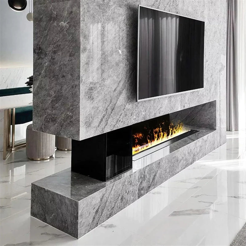Modern Charcoal Fluted Wall Panel with Marble Veining (Vertical Slats)