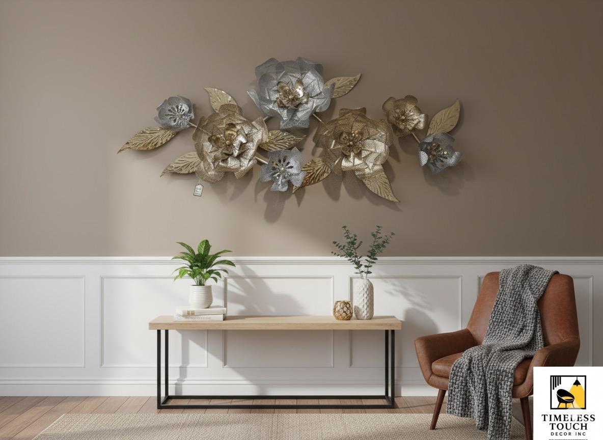Elevate your decor with this spectacular Multi-Tone Metallic Floral Wall Sculpture. This exquisite 3D art piece features a beautiful arrangement of blooms crafted in a sophisticated mix of brushed gold and luminous silver/platinum finishes, creating a dazzling focal point in any room.